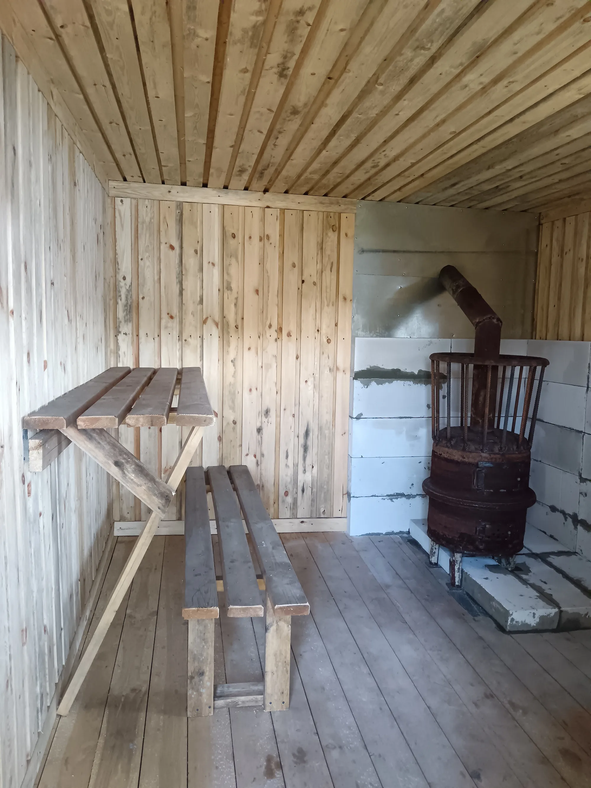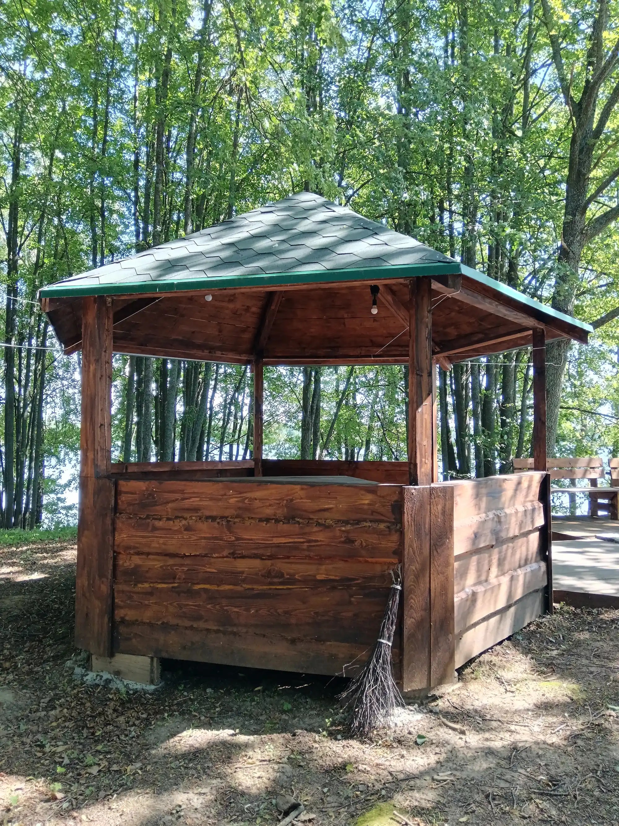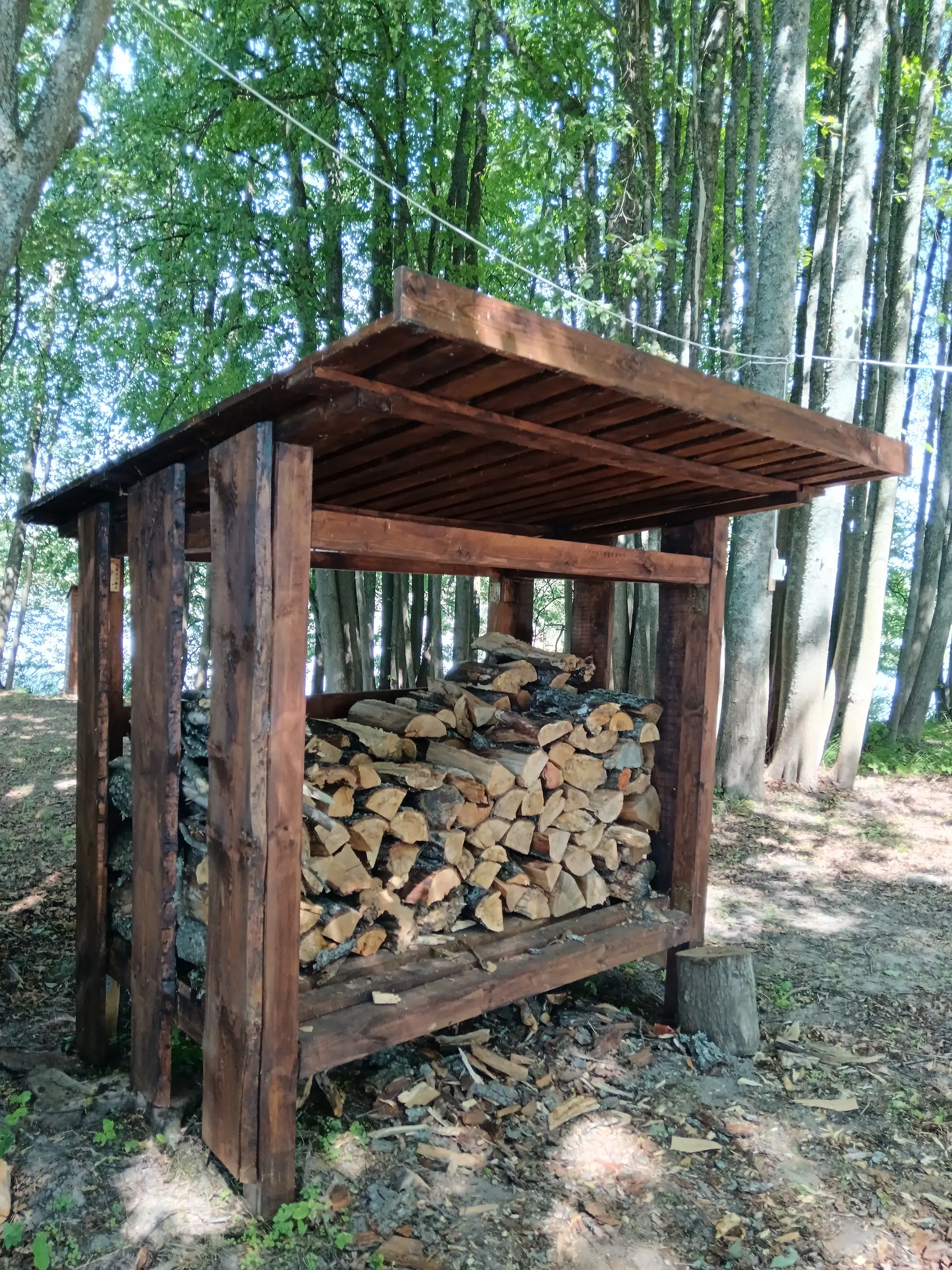 Абсталявана альтанкай, туалетам, вогнішчам з крамамі, пірсам, смеццезборнікам, сушкай для дроў, падстрэшкам для дроў, дровамі. Ёсць святло.