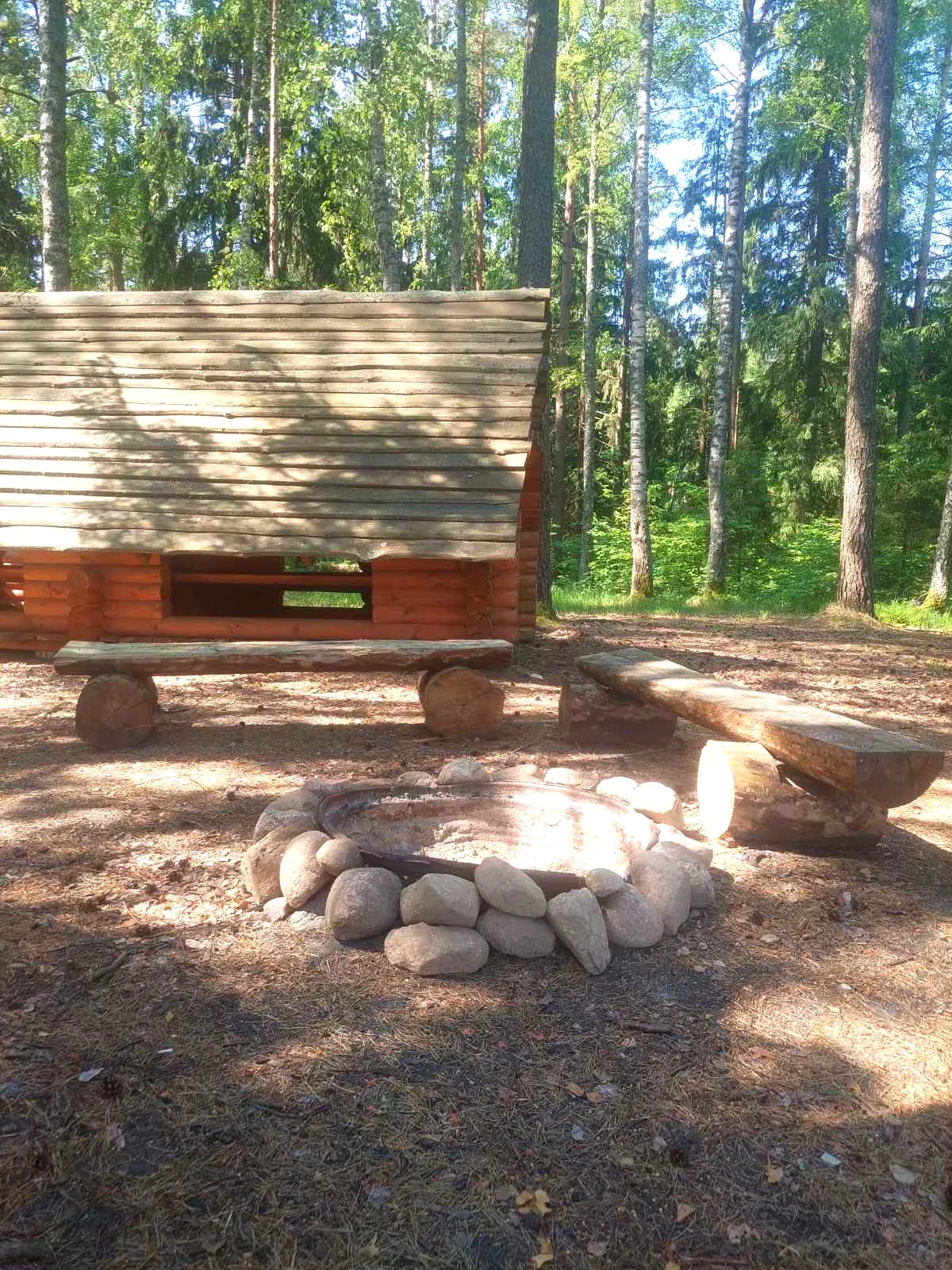 Абсталявана альтанкай, мурам да вады, вогнішчам з крамамі, туалетам, смеццезборнікам, падстрэшкам для дроў, дровамі.