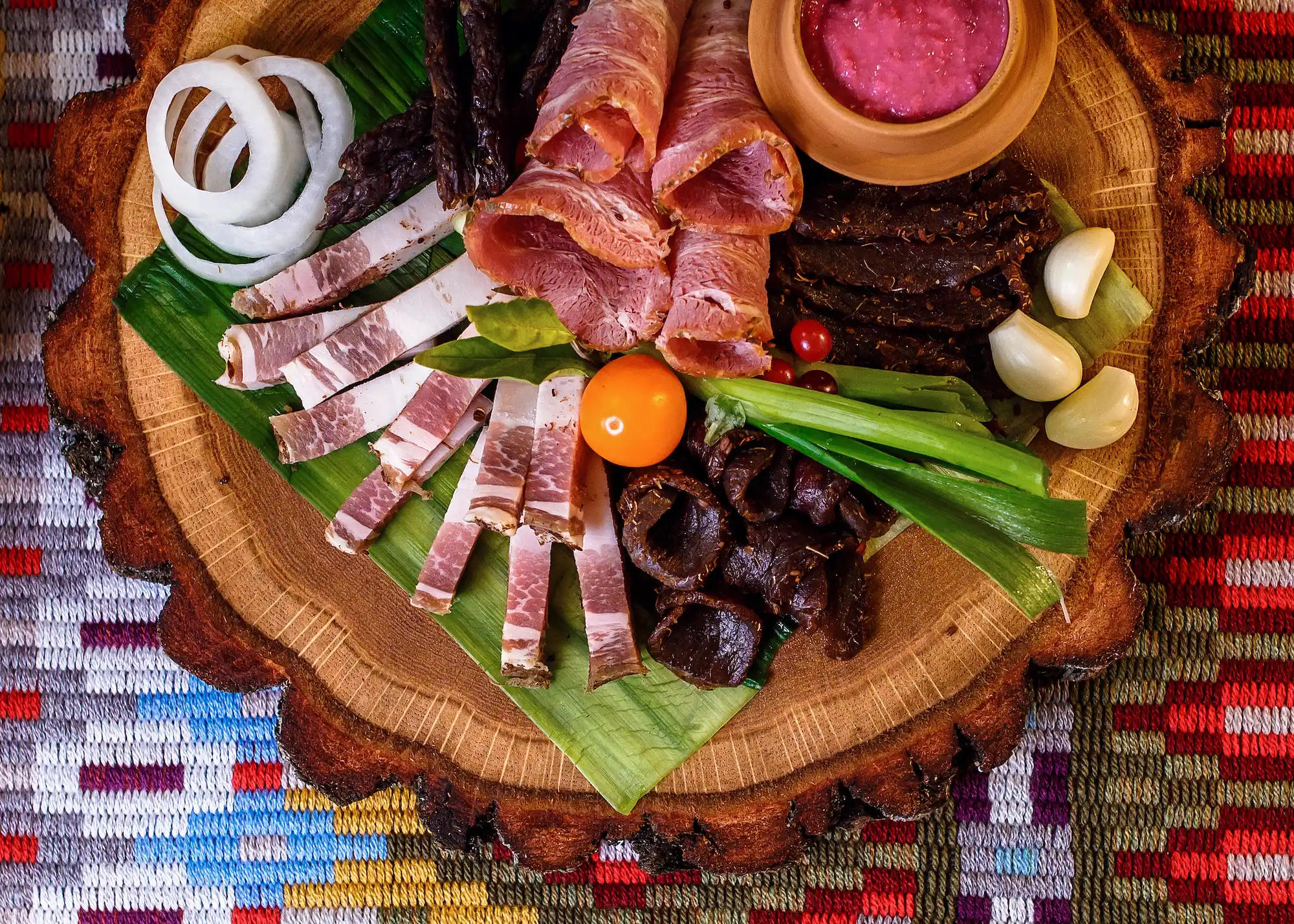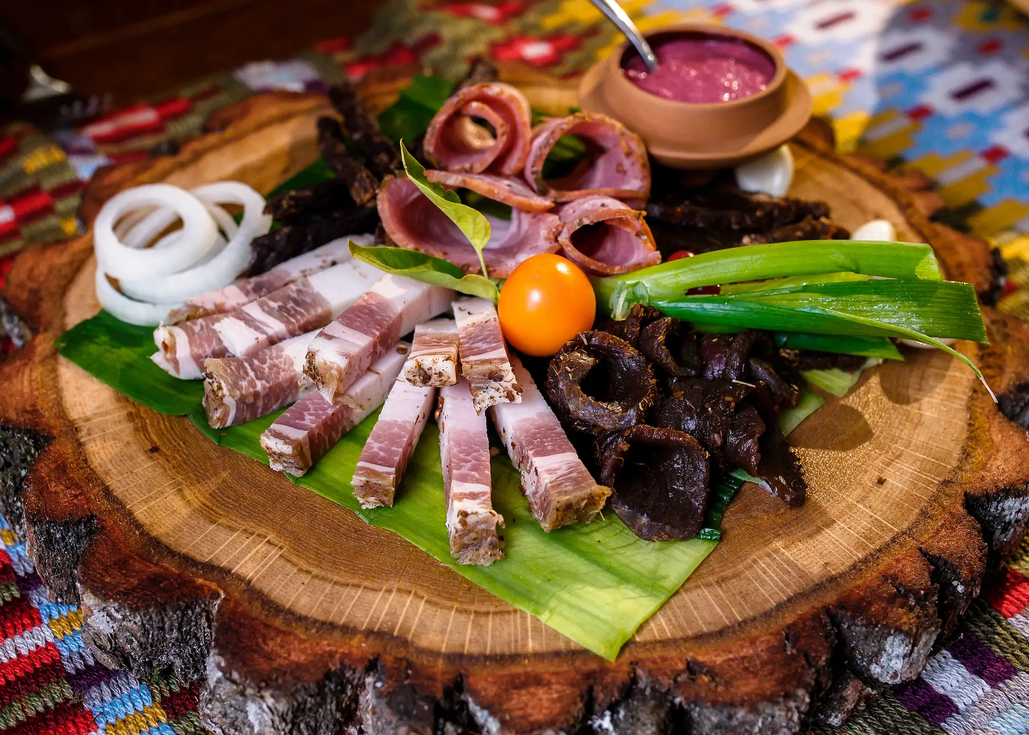 Ассорти из различных видов мясных деликатесов.
