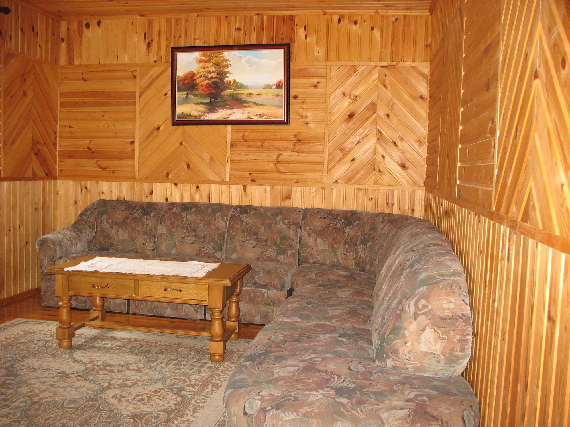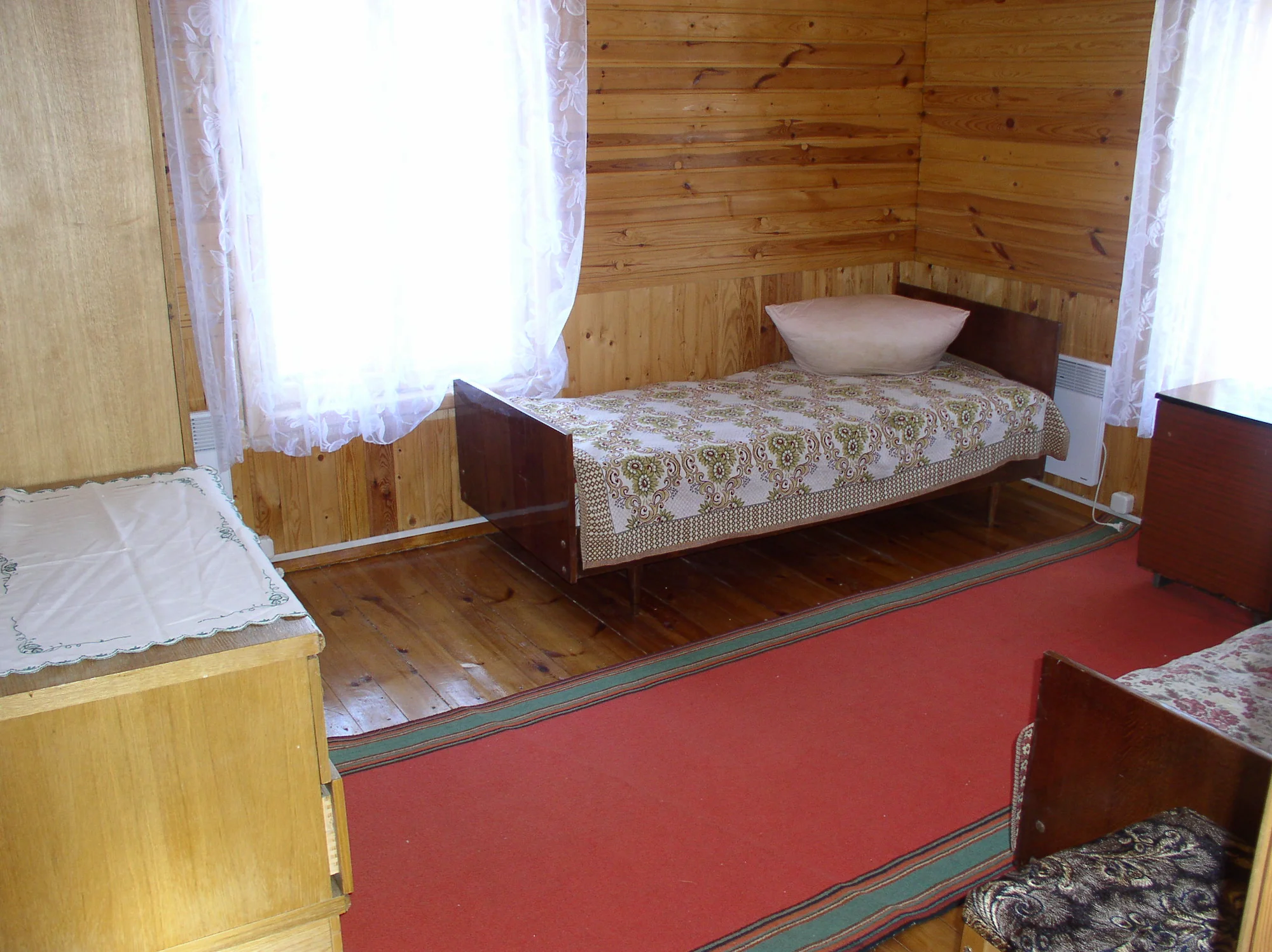 Двухпавярховы, кухня (электрапліта, халадзільнік, мікрахвалевая печ, посуд, сталовыя прыборы), сталовая, гасцёўня, тэлевізар, дзве двухмесныя спальні з паасобнымі ложкамі на другім паверсе; дадатковыя месцы – два ложкі ў гасцінай, пасцельная бялізна. Гарачая вада, санвузел з душавой кабінай. Бясплатны WI-FI.