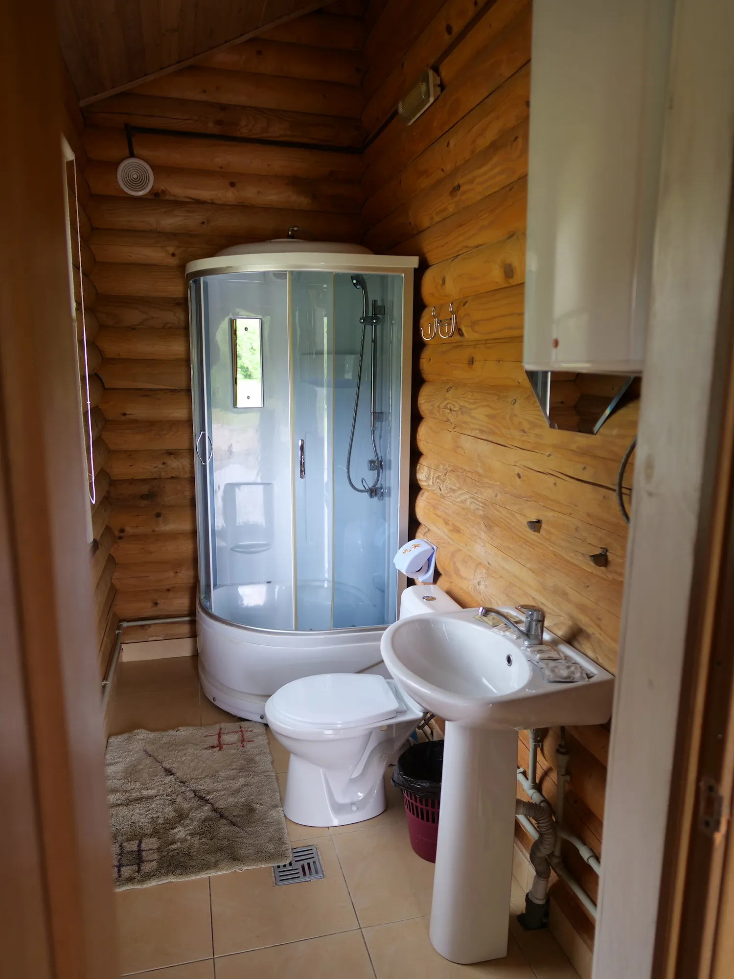Санвузел: душавая кабіна, унітаз, ракавiна, камплект ручнікоў, гасцінічная касметыка (шампунь-кандыцыянер, гель, мыла).