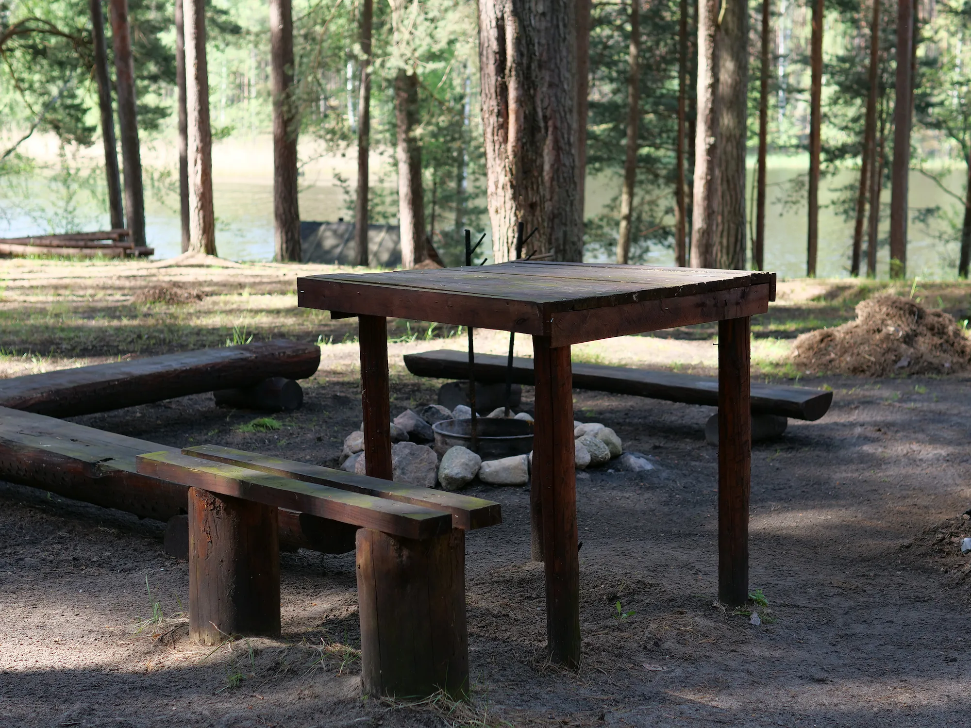 Всё готово для вашего отдыха: чистое кострище и сухие лавочки