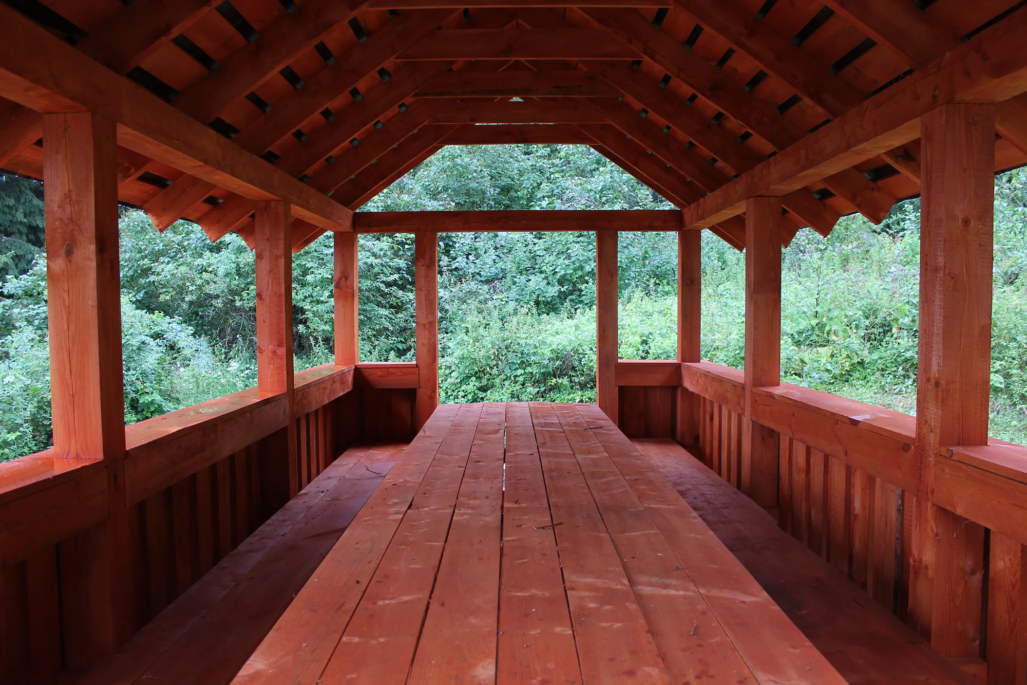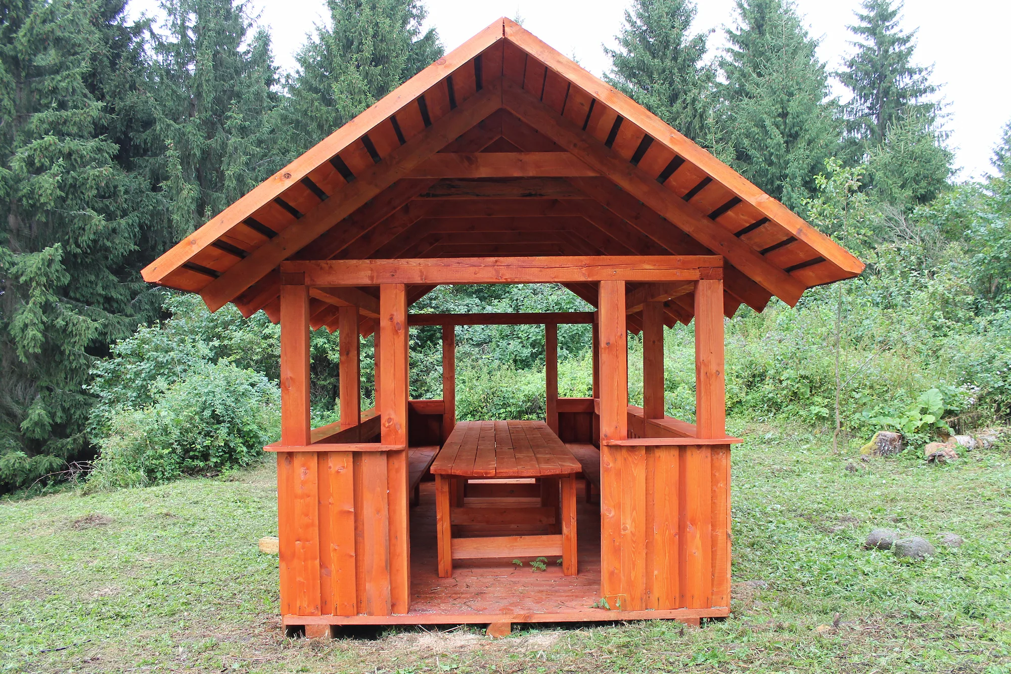 It is equipped with a gazebo, toilet, fire pit with benches, a pier, trash bin, firewood dryer, and firewood.