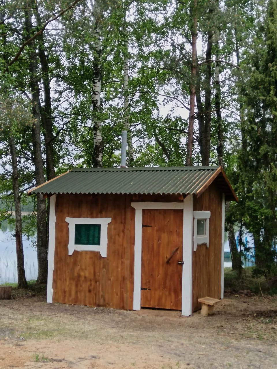 Located on Lake Strusto in a mixed forest.