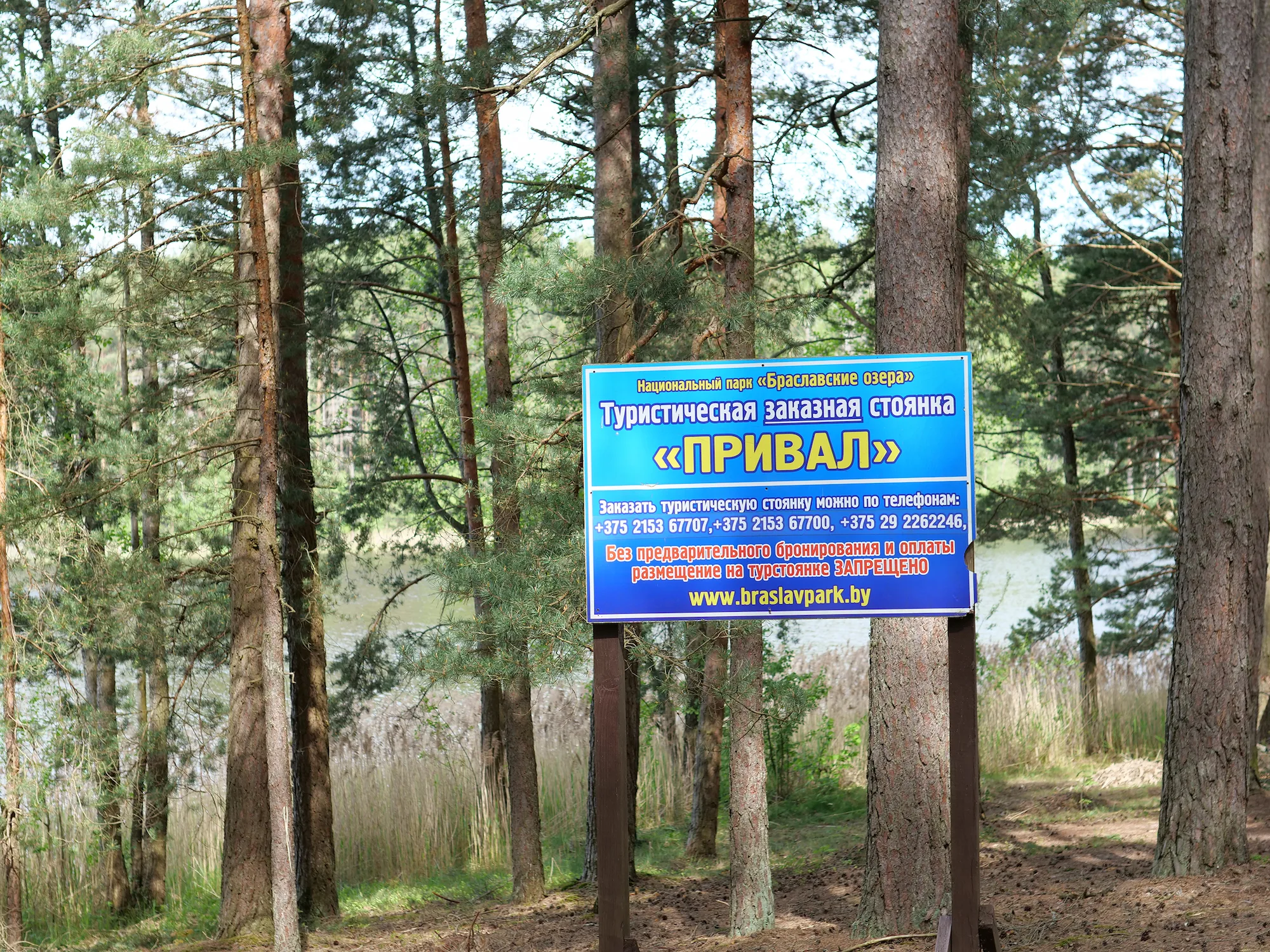 Access to the campsite is via a sandy road that transitions into a forest road. From the Braslav–Vidzy road, turn left just before Vainyuntsy village and drive approximately 3 km. In Misyantsy village, turn right and continue for 1.5 km into the forest.