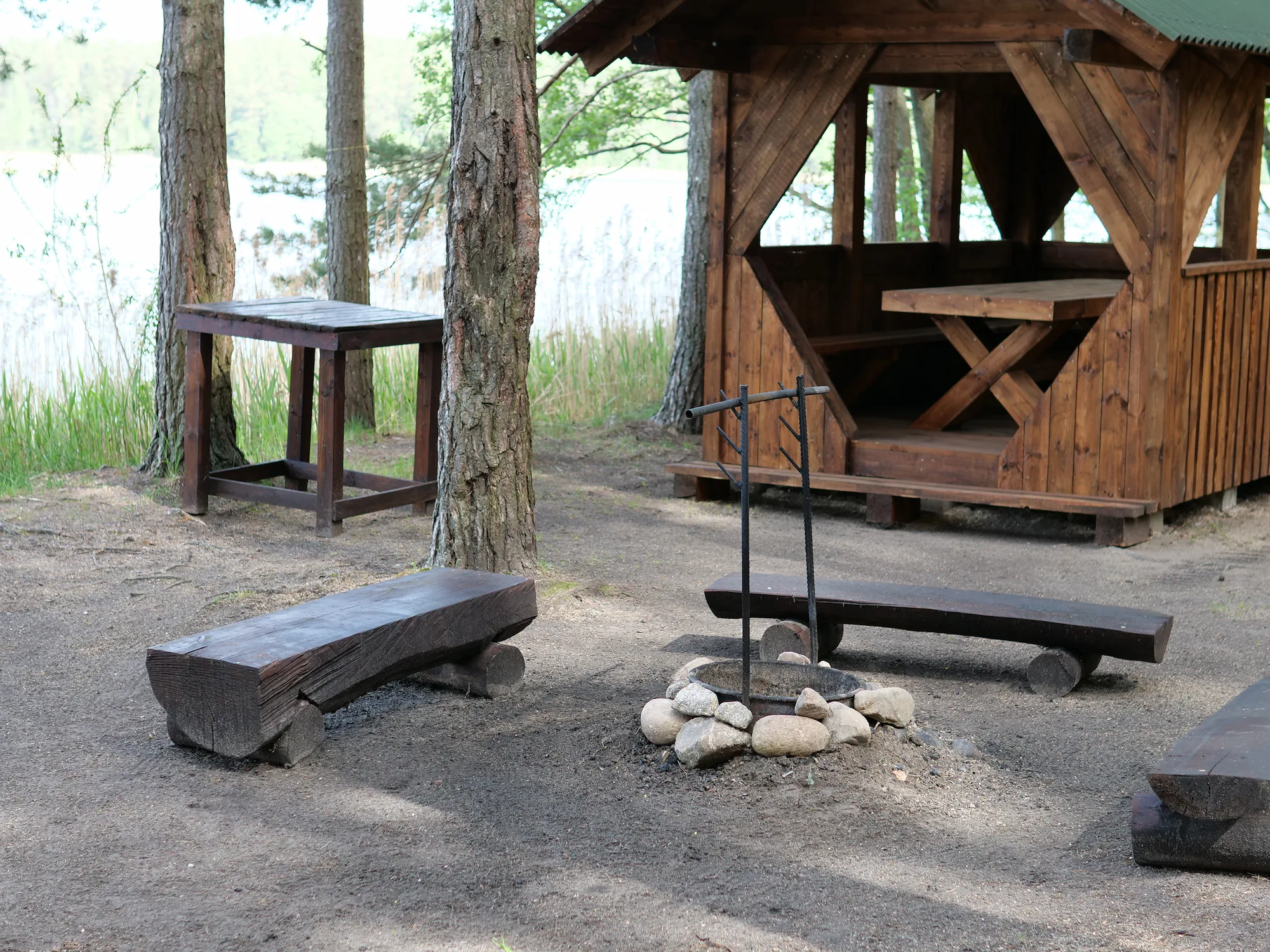 Located on Lake Dolgoe in a pine forest, the campsite accommodates 6–8 people.