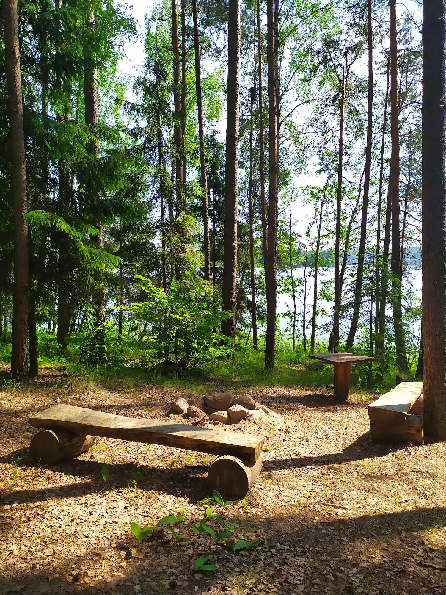 Located on Lake Dolgoe in a mixed forest, within sight of the “Ministerskaya” campsite (50m).