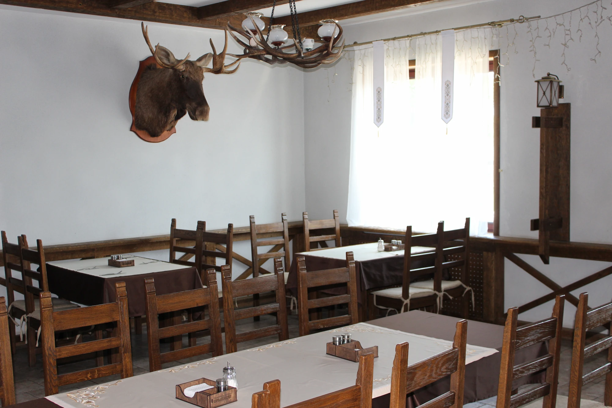 The restaurant will delight you with its exquisite interior, stuffed animals, unobtrusively looking from different directions, fill the hall with the atmosphere of a Polessky fairy tale.