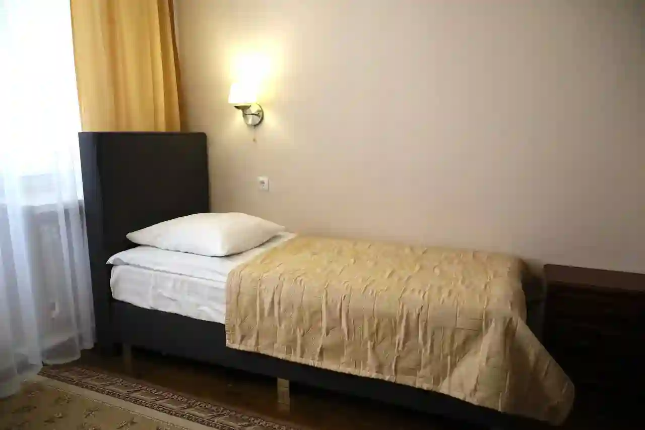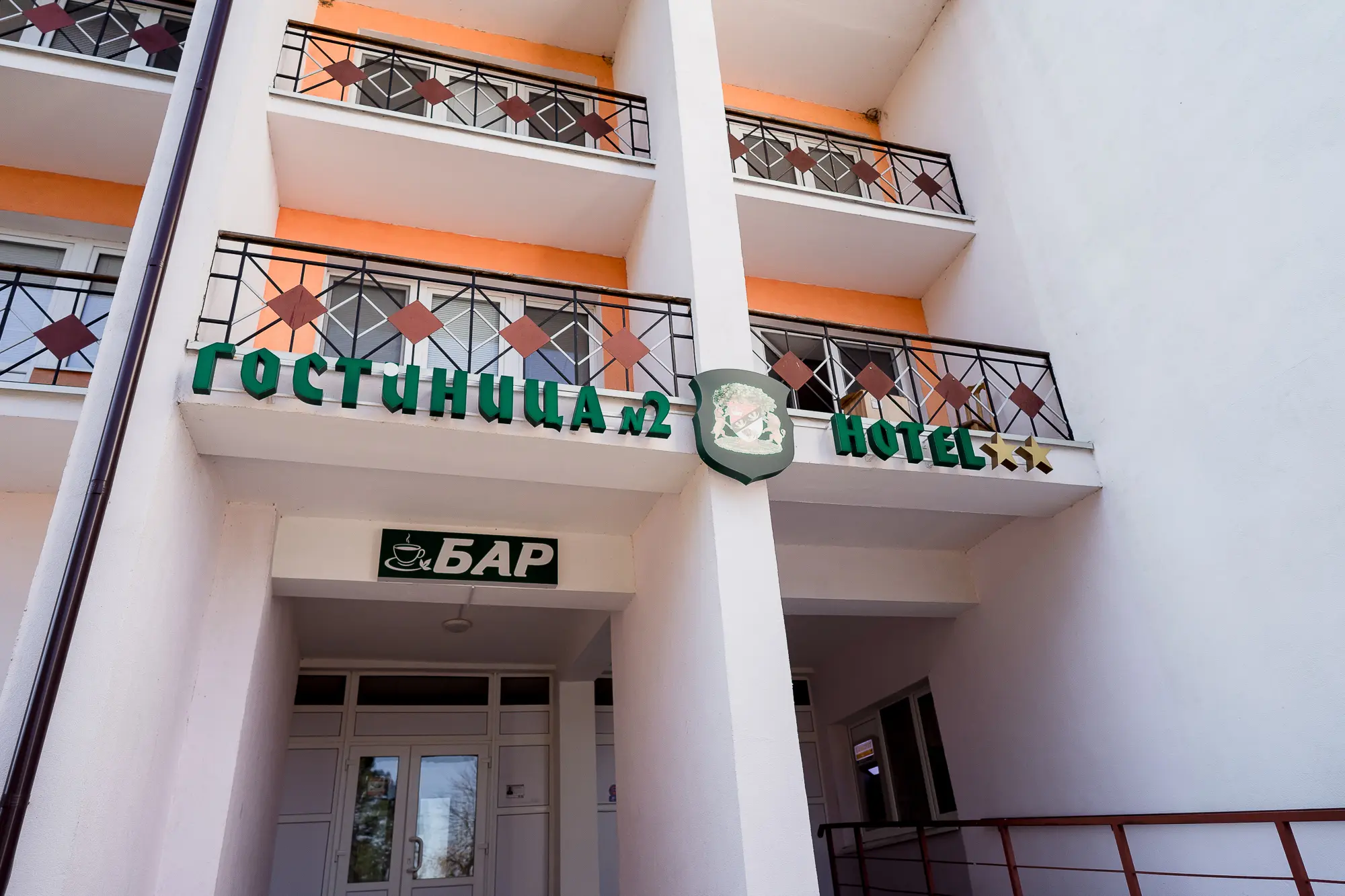 Hotel No. 2 (two-star category) is located in the center of the village of Kamenyuki. It is conveniently located near shops, the Lesnoy café (150 m) and other amenities. The hotel offers rooms of various categories, including a wheelchair accessible room and a bar for breakfast and dinner.