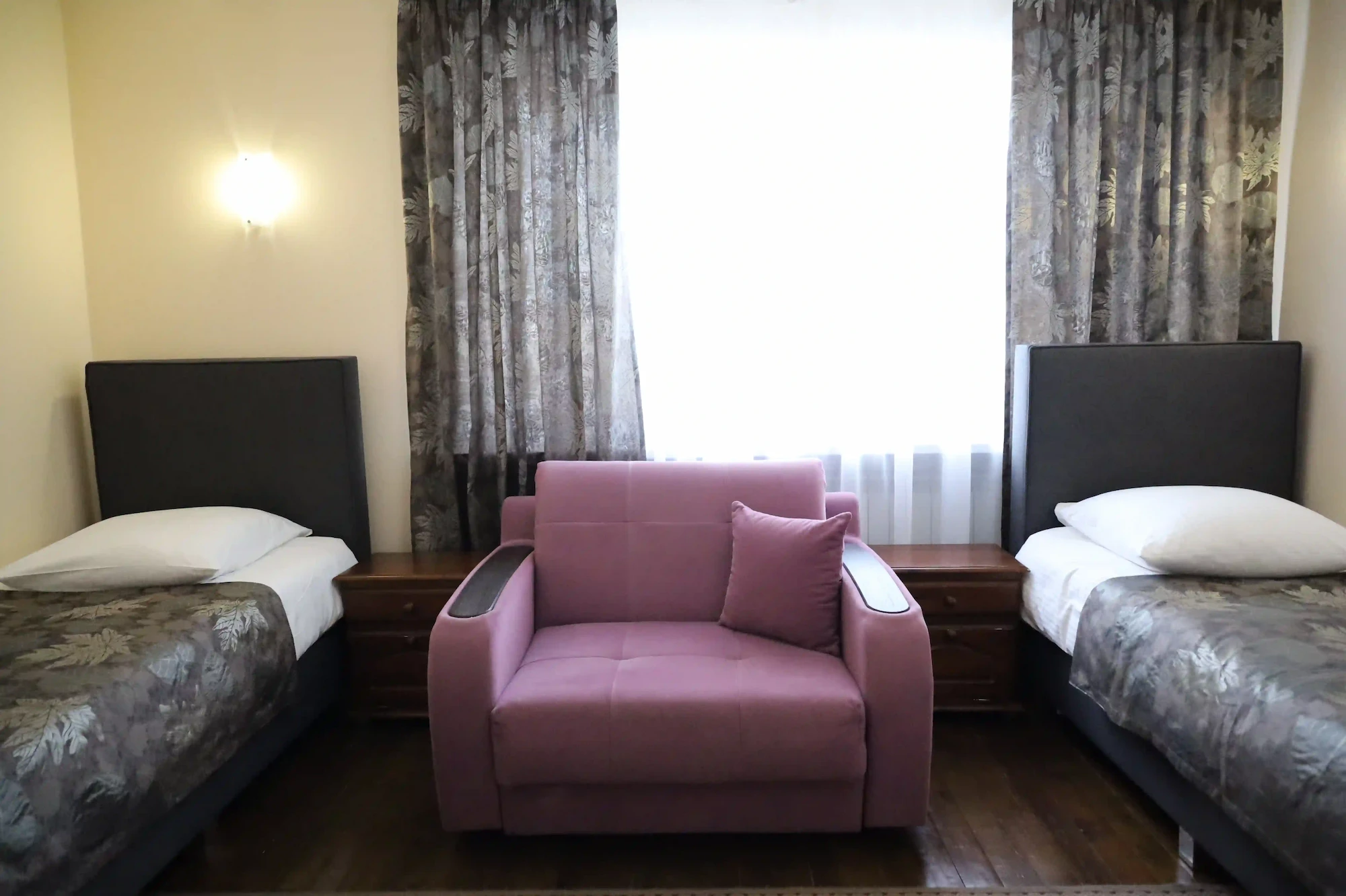 Classic and neat, discreet and minimalist, comfortable – these are the few words that describe this room. It features a double bed and is 15 square meters. Amenities include Wi-Fi, a TV, hangers, a mirror, a furniture set, an electric kettle, drinking water, and tea. The bathroom includes a shower, bath towels, and toiletries (shampoo and soap).