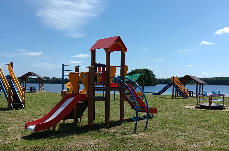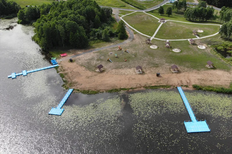 Оборудована беседками, туалетами, пирсами, кострищами с лавками, мусоросборниками, детской игровой площадкой. На территории находится пункт проката лодок, катамаранов, велосипедов. Рядом находятся вольеры с дикими животными, сафари-парк, пруды для гарантированной рыбалки.