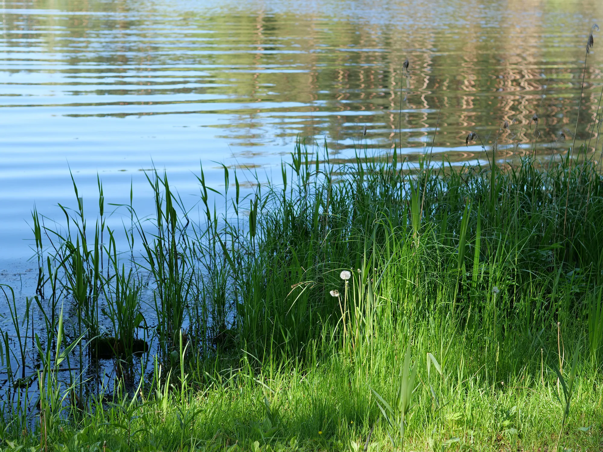 Береговая линия: преимущественно прибрежно-водная растительность с небольшим участком песчаного дна.